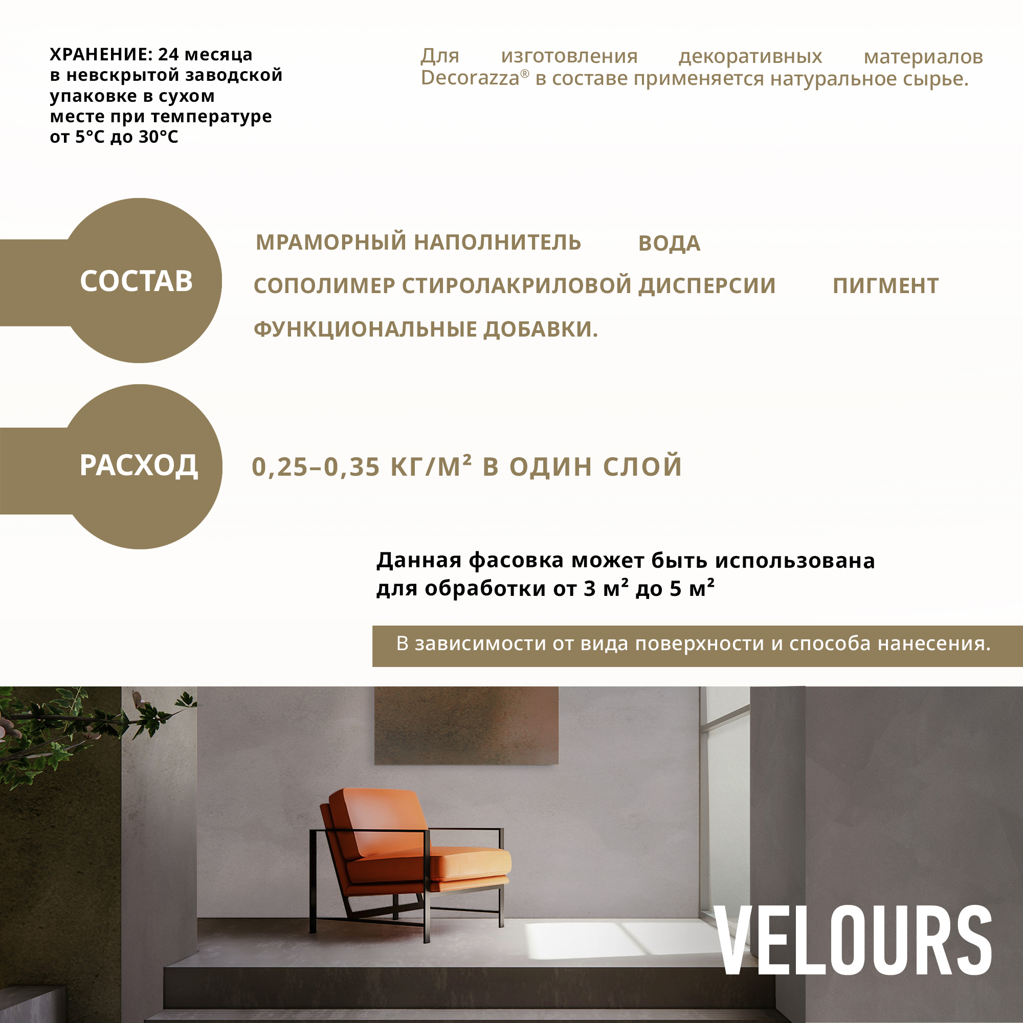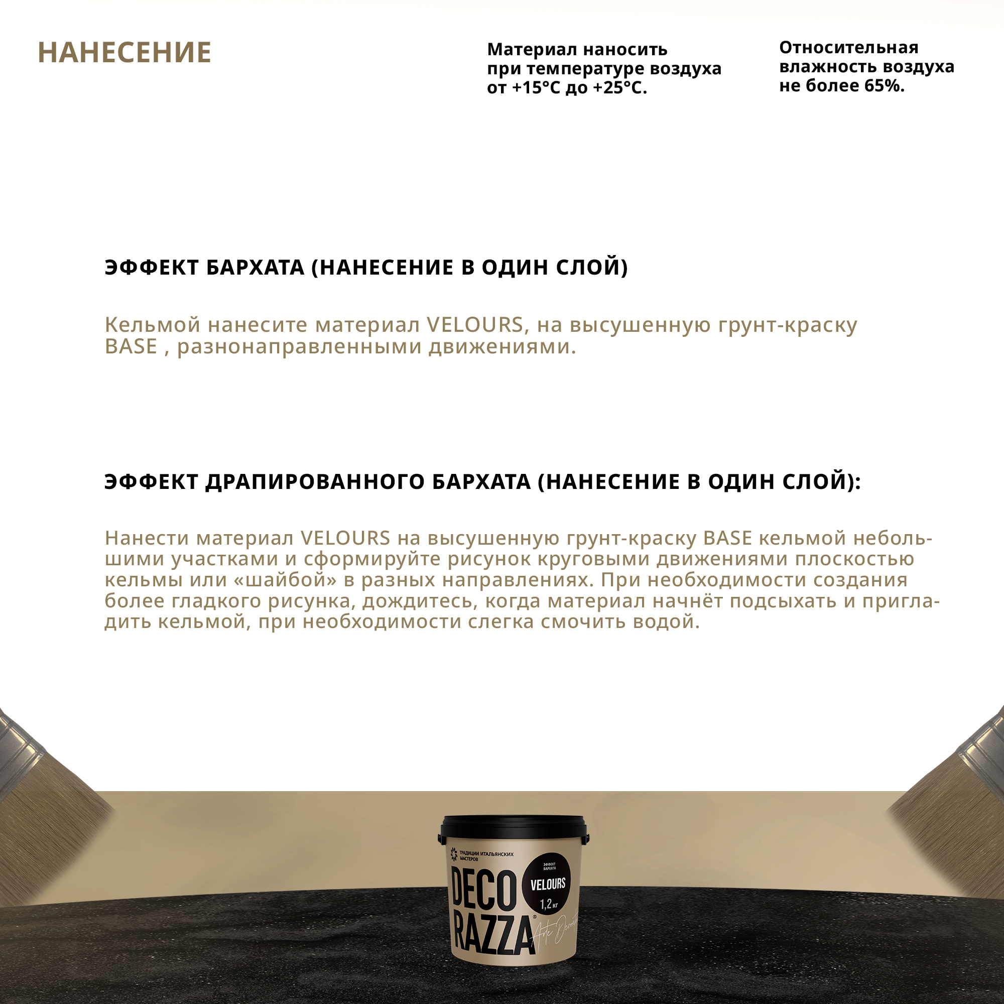 Декоративное покрытие VELOURS - Декоративное покрытие для формирования эффекта гладкой или драпированной бархатной поверхности от бренда Decorazza с доставкой по России!