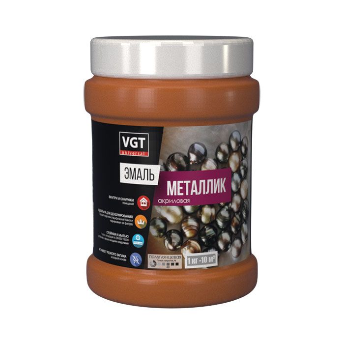 Эмаль акриловая ВД-АК-1179 Металлик - Акриловая эмаль с металлическим блеском для декоративной окраски практически любых поверхностей. Применяется для наружных и внутренних работ от бренда VGT-ecology material с доставкой по России!