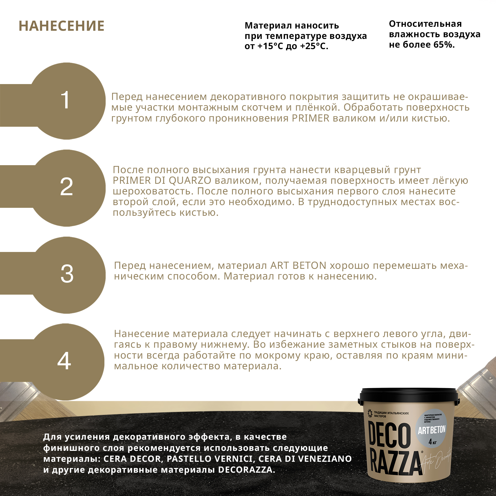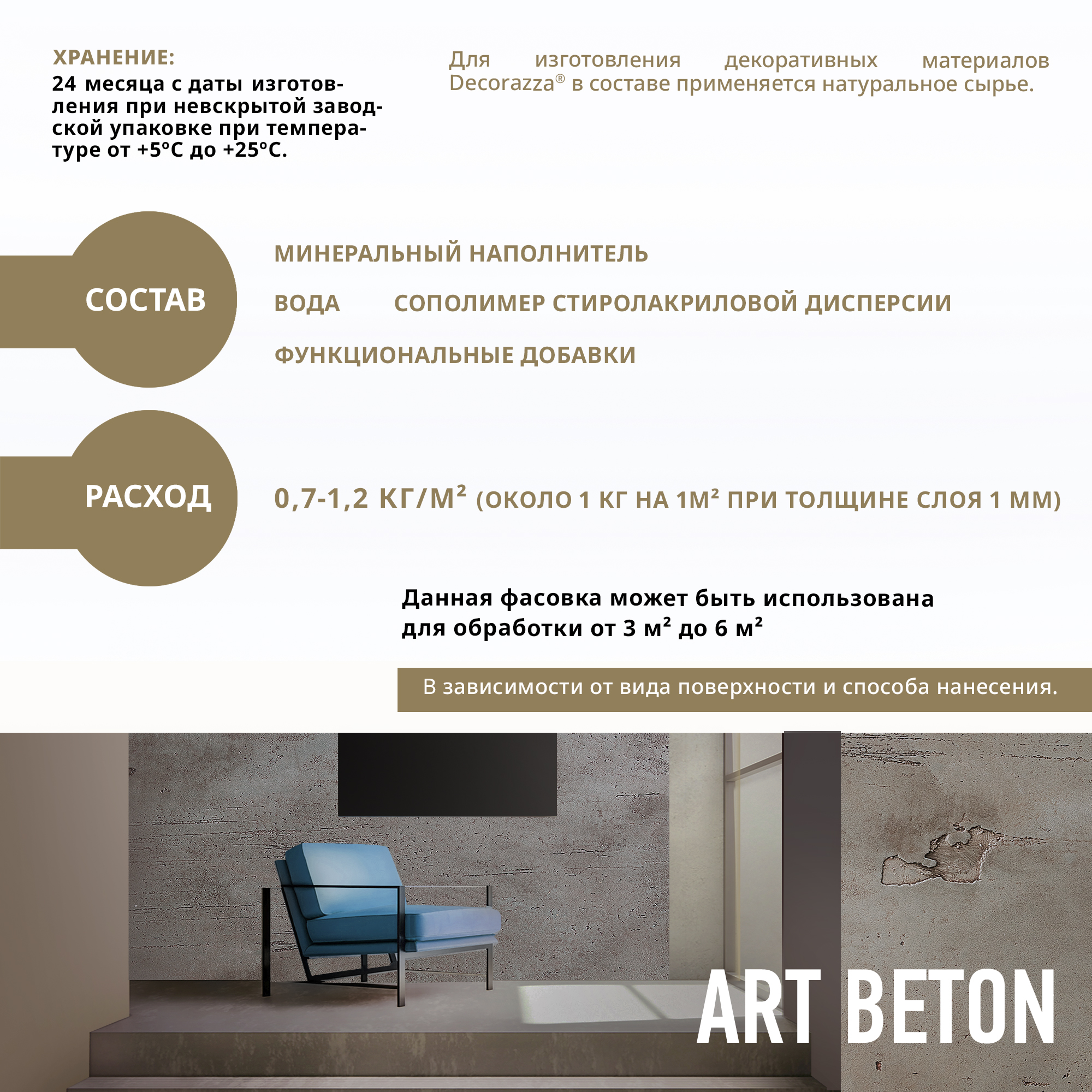 Фактурное покрытие ART BETON - Декоративное покрытие для формирования бесшовных поверхностей с имитацией бетона от бренда Decorazza с доставкой по России!