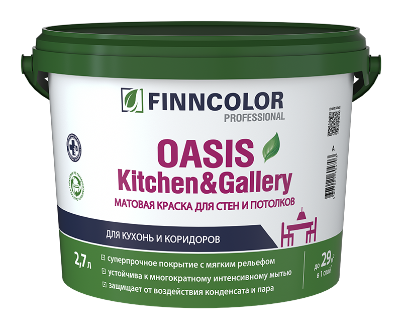 Интерьерная краска OASIS KITCHEN & GALLERY (мат) - Интерьерная краска для стен и потолков, особо устойчивая к мытью и истиранию от бренда Finncolor с доставкой по России!