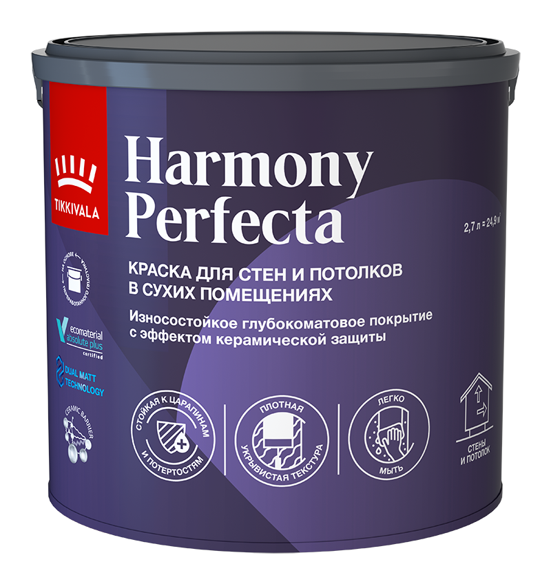 Интерьерная краска PERFECTA (гл/мат) - Глубокоматовая износостойкая краска для стен и потолков. Устойчива к мытью от бренда Tikkurila с доставкой по России!