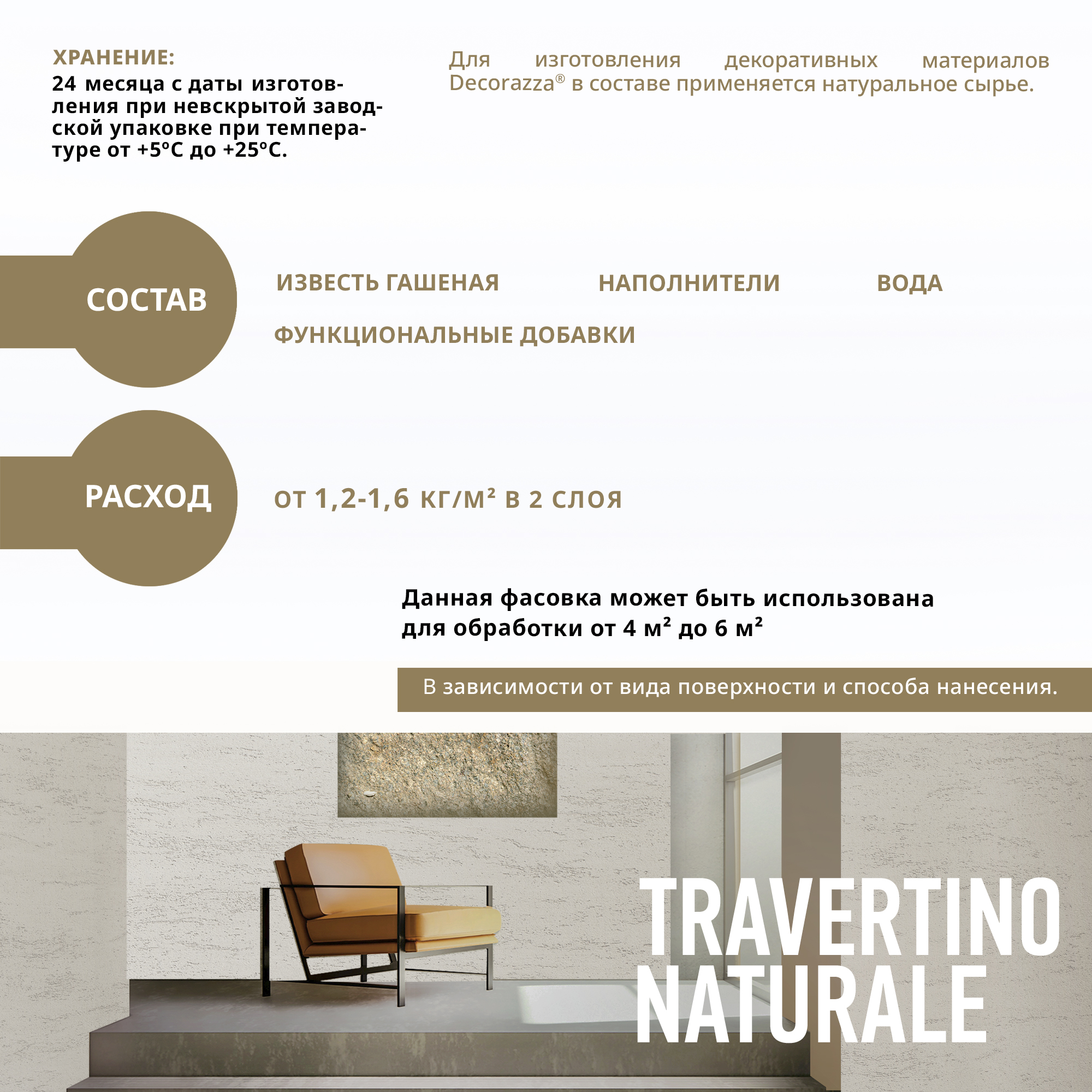 Известковая штукатурка TRAVERTINO NATURALE  -  Декоративная штукатурка с эффектом каменной поверхности от бренда Decorazza с доставкой по России!