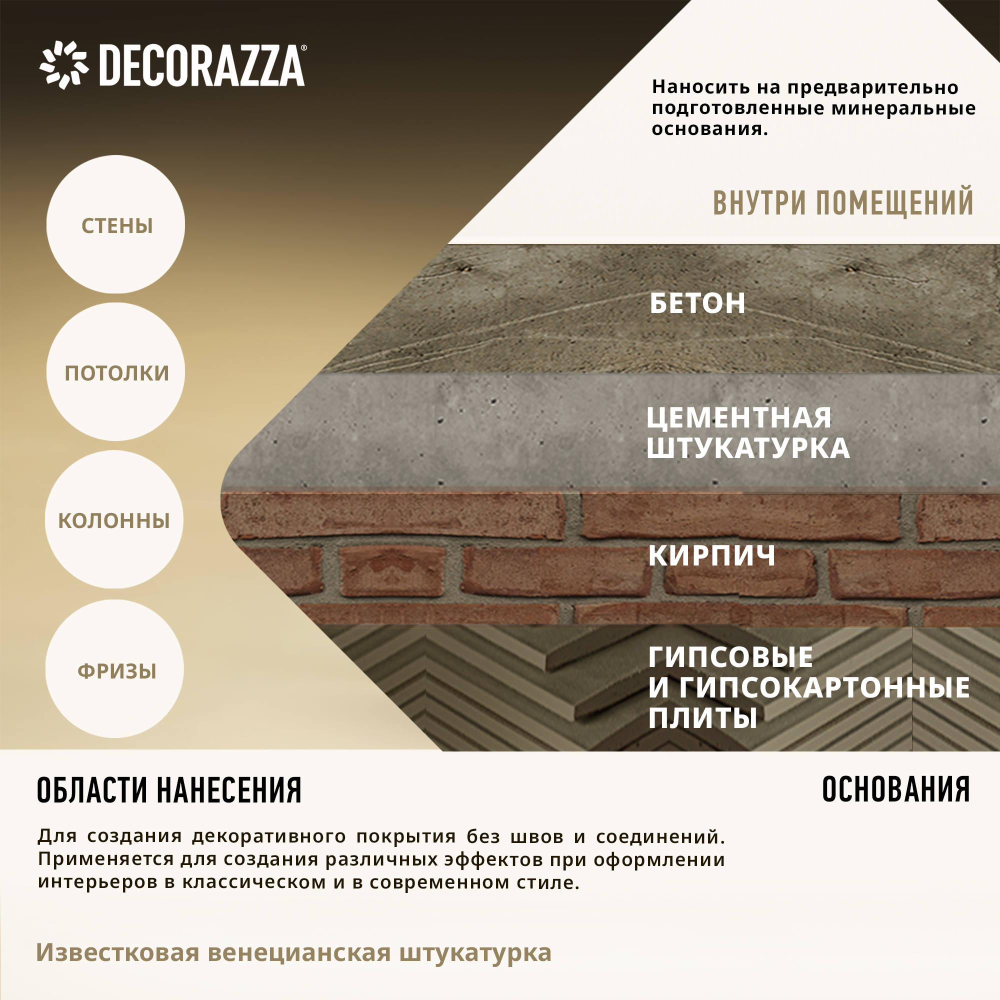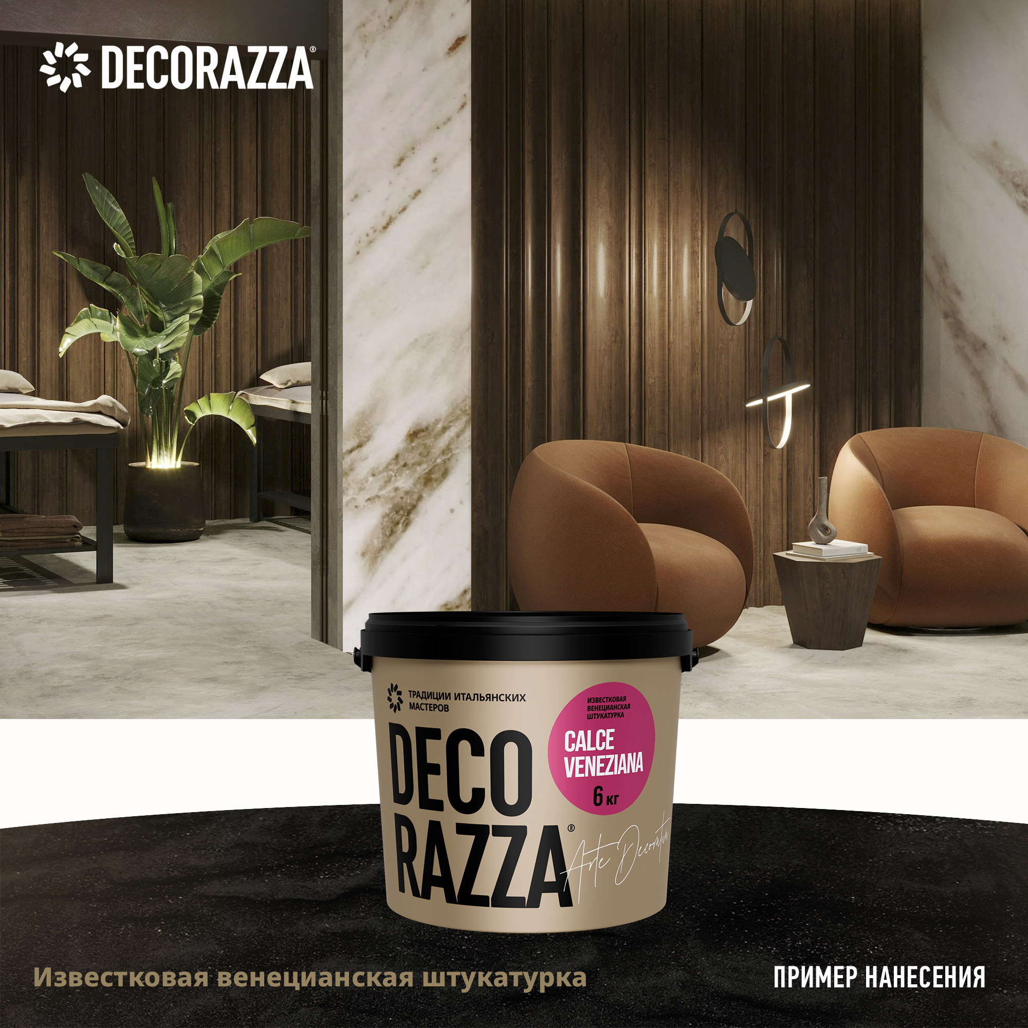 Известковая венецианская штукатурка СalceVeneziano - Венецианская декоративная штукатурка на основе гашеной извести для создания декоративного покрытия без швов и соединений на стенах, потолках и архитектурных элементах внутри сухих помещений от бренда Decorazza с доставкой по России!