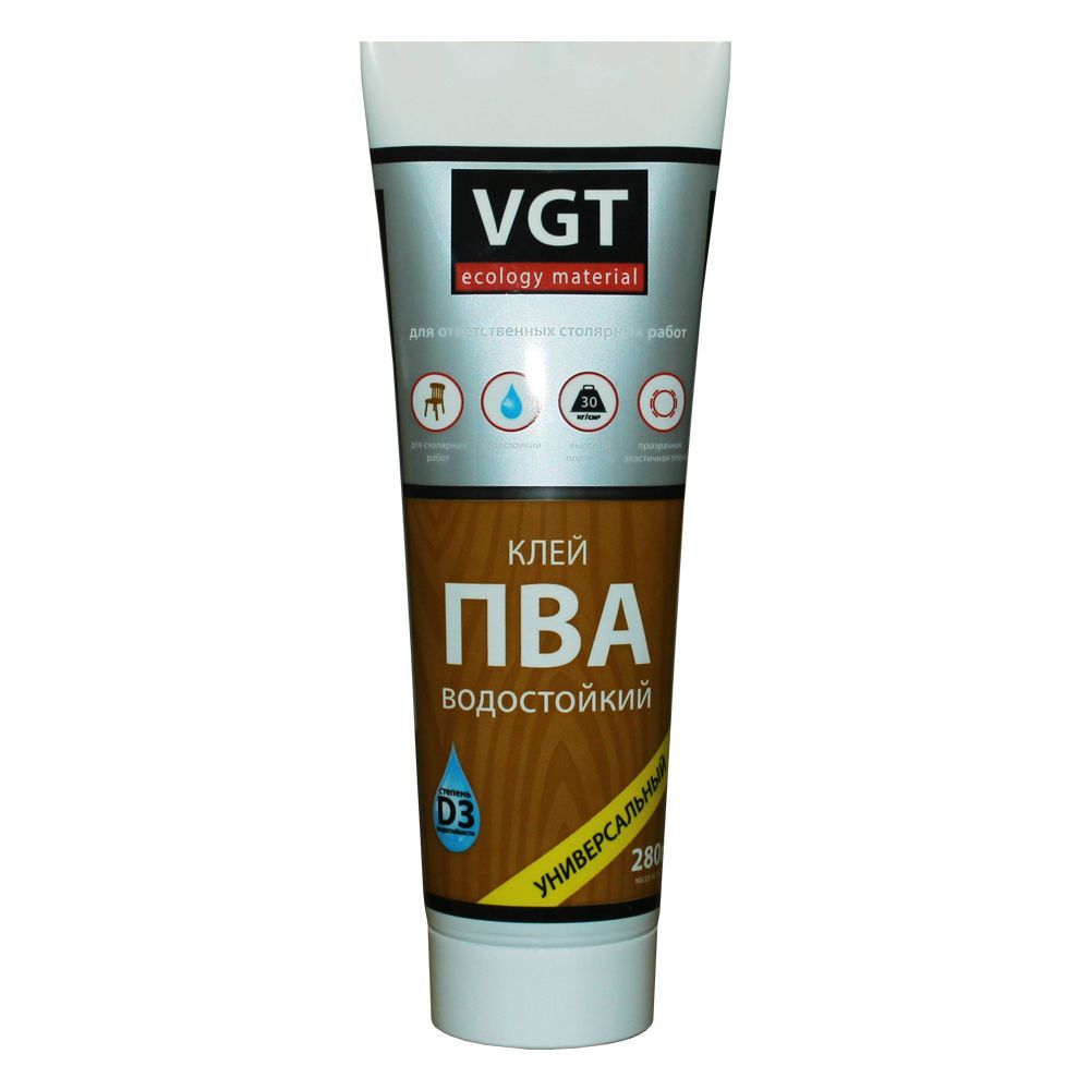 Клей ПВА водостойкий ВГТ - Клей столярный водостойкий. Имеет высокую адгезию к дереву, ДСП, ДВП, бумаге и пр. от бренда VGT-ecology material с доставкой по России!