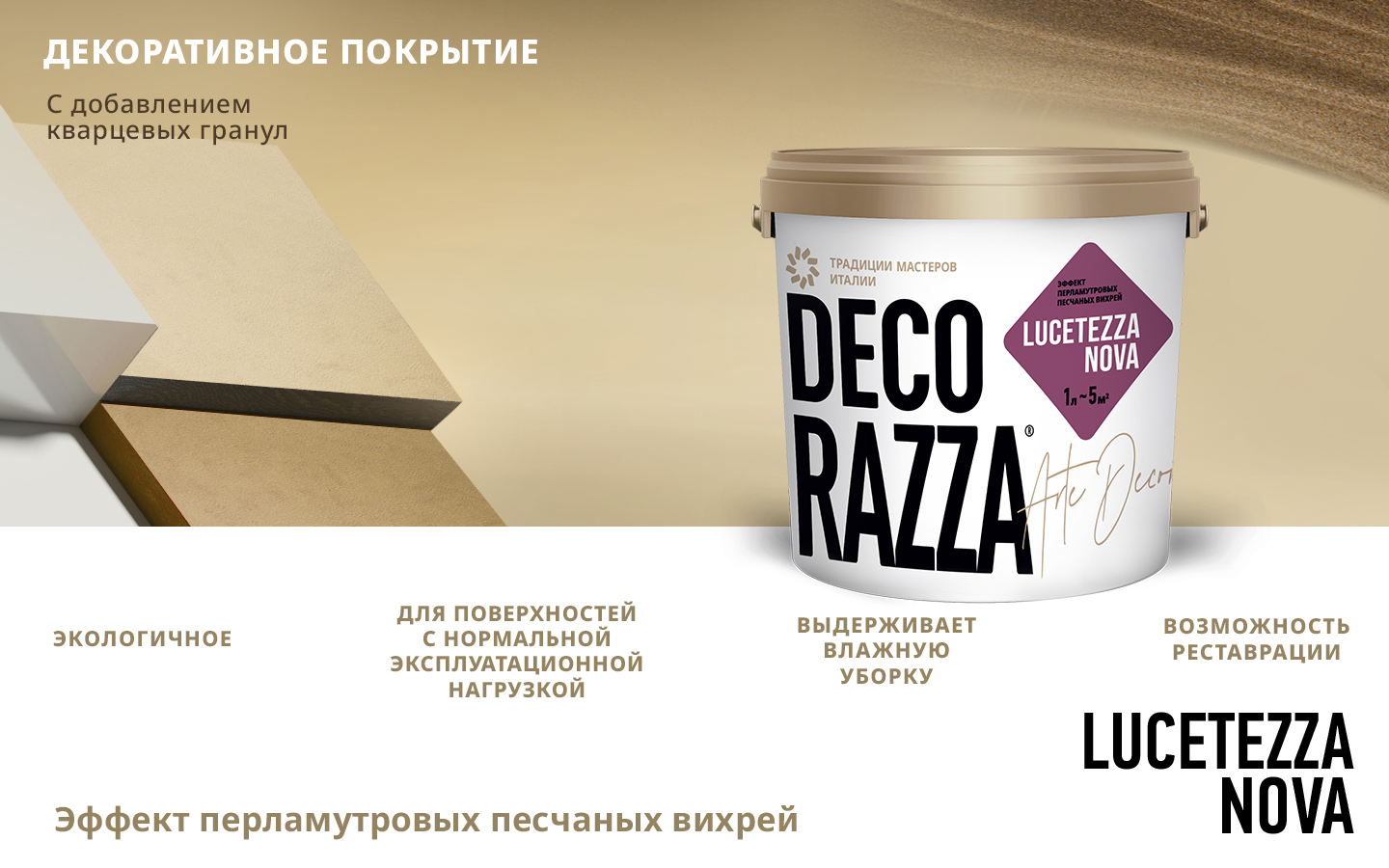 Краска декоративная LUCETEZZA ARGENTO - Декоративное покрытие с легкой песчаной структурой от бренда Decorazza с доставкой по России!