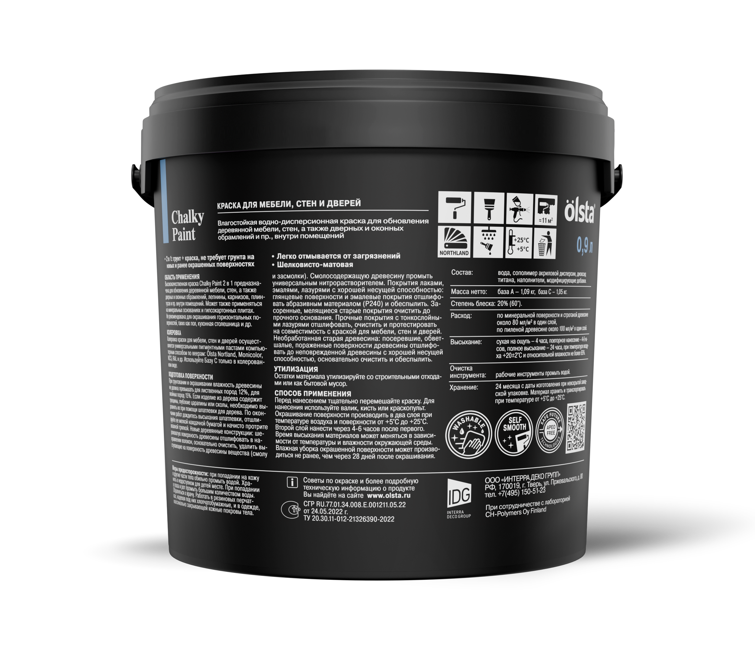 CHALKY PAINT КРАСКА ДЛЯ МЕБЕЛИ, СТЕН И ДВЕРЕЙ, ШЕЛКОВИСТО-МАТОВАЯ