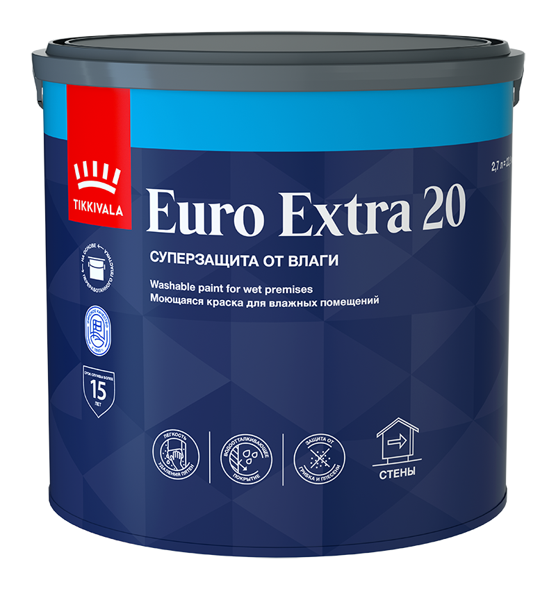 Краска для влажных помещений EURO EXTRA-20 п/мат - Моющаяся интерьерная краска для окраски стен и потолков во влажных помещениях, в том числе в ванных комнатах от бренда Tikkurila с доставкой по России!