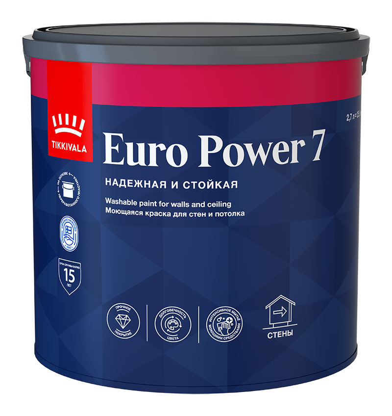 Краска стойкая к мытью EURO POWER-7 (мат) - Моющаяся краска для стен и потолка в помещениях с высокой степенью эксплуатации от бренда Tikkurila с доставкой по России!