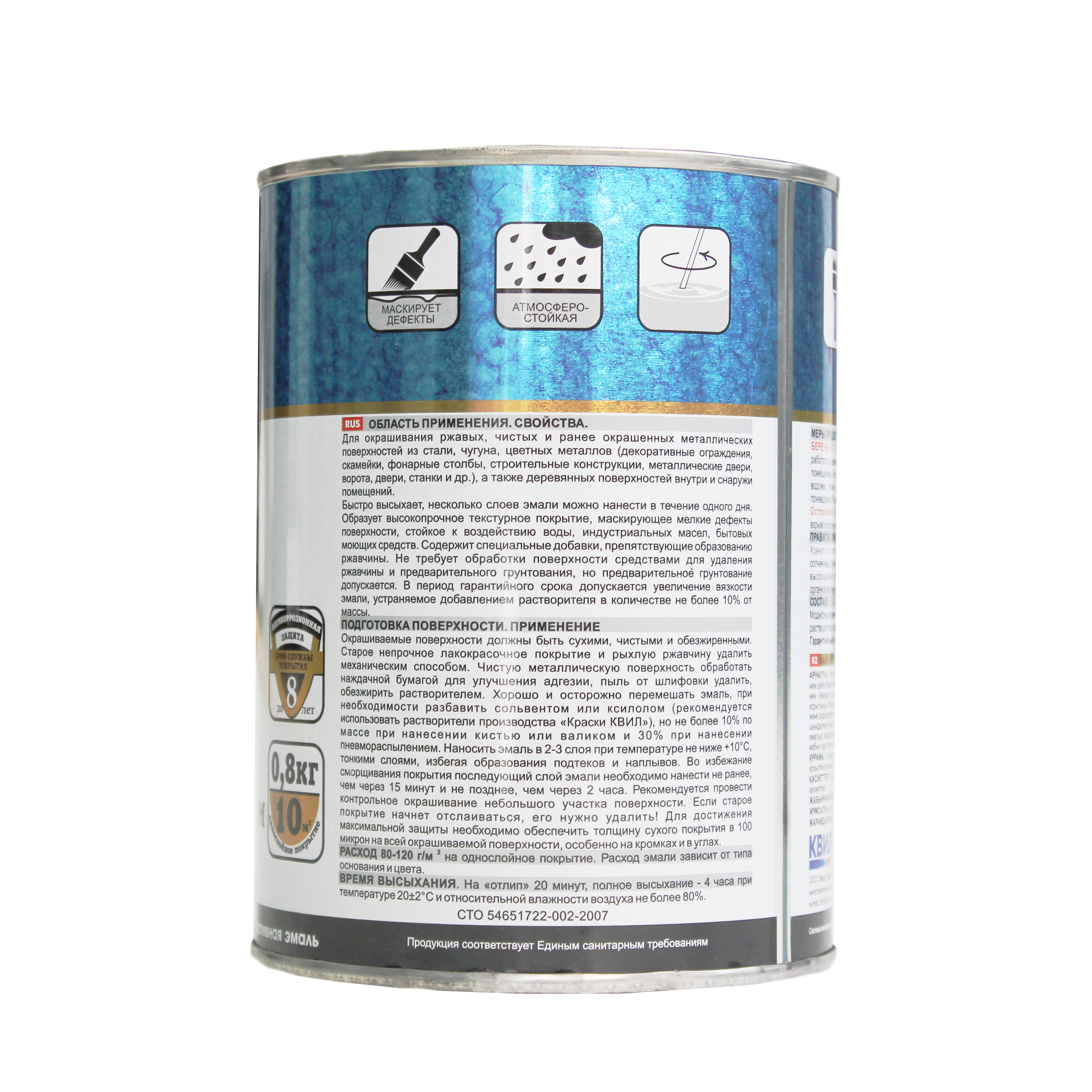 Молотковая эмаль по ржавчине HardMax - Молотковая эмаль HardMax — это непревзойденное решение для восстановления блеска и целостности металлических поверхностей, пораженных ржавчиной. С формулой, обеспечивающей эффект чеканки, эта эмаль создает превосходное декоративное покрытие. Она идеально подходит для обработки различных видов металла, надежно устраняя следы коррозии и защищая от повторного появления ржавчины. Благодаря своим уникальным свойствам, молотковая эмаль HardMax гарантирует долговечность и эстетический вид изделий из металла, делая их словно заново откованными мастерами высокого класса. от бренда Квил с доставкой по России!