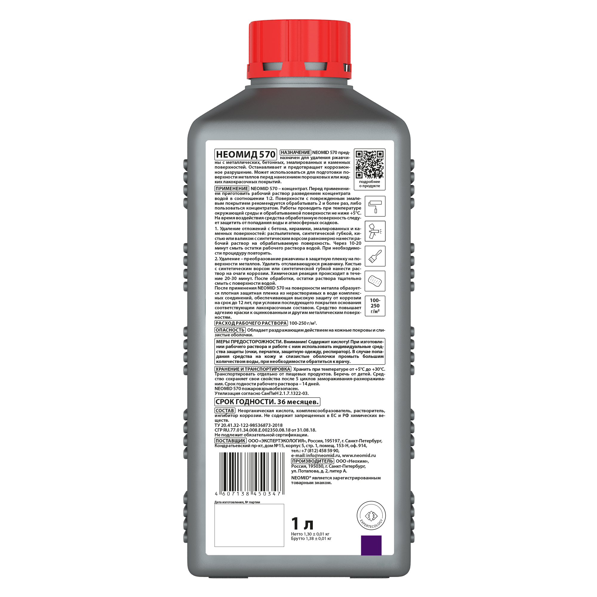 Концентрированное средство для удаления ржавчины. Останавливает и предотвращает коррозионное разрушение - Преобразователь ржавчины NEOMID 570 из наличия или под заказ, с доставкой или самовывозом со склада.