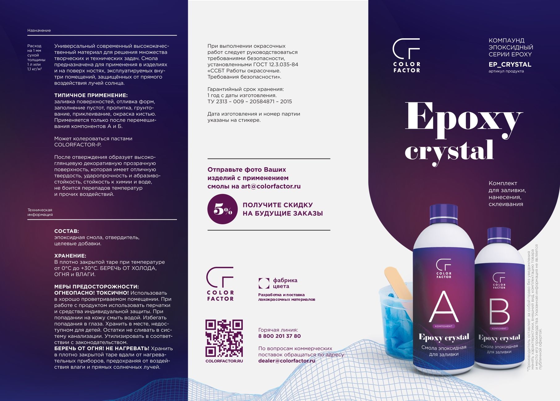 Смола эпоксидная для заливки   -  Эпоксидная смола Color Factor — незаменимый инструмент для мастеров и профессионалов в области творчества и художественного оформления. Эта двухкомпонентная смола отличается высочайшей прочностью и устойчивостью к внешним воздействиям, что делает её идеальной для профессионального применения. Благодаря своей прозрачности и гладкости после отверждения, она позволяет создавать изысканные и долговечные изделия, будь то ювелирные украшения, декоративные элементы или уникальные настольные композиции. Смола Color Factor обеспечивает точную заливку любых форм, обеспечивая безупречное качество и непревзойденную долговечность ваших творений. от бренда COLOR FACTOR с доставкой по России!